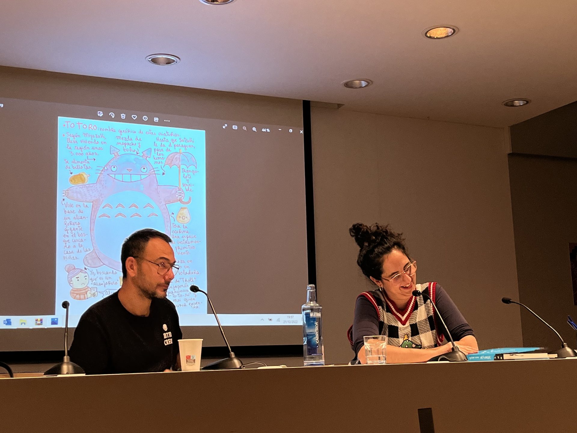 Amaia Arrazola ha presentado esta tarde en Zaragoza su nuevo libro, “Totoro y yo”, una obra en la que recorre la historia filmográfica de Hayao Miyazaki y analiza la influencia de Studio Ghibli en la cultura japonesa y mundial. “He querido que el libro transmitiese la rigurosidad de las películas de Miyazaki”, ha afirmado Arrazola. La ilustradora ha explicado, además, que para realizar su obra tuvo que ver las películas y, posteriormente, escribir y elaborar las ilustraciones de manera simultánea.