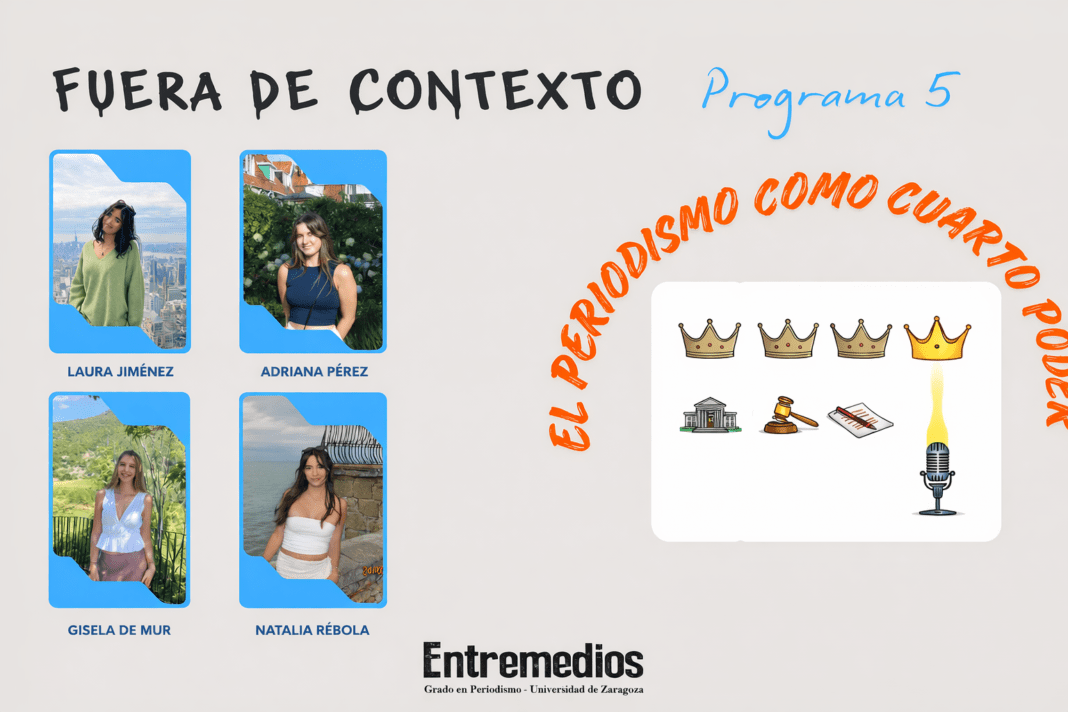Vuelven a Entreondas Laura Jiménez, Adriana Pérez, Gisela de Mur y Natalia Rébola, con un nuevo programa del podcast «Fuera de Contexto». En este quinto episodio nos comentan una nueva visión sobre el periodismo como «Cuarto Poder». Analizaran cómo los medios vigilan al poder, los riesgos de la desinformación y la pérdida de confianza, y por qué una información independiente es esencial para una sociedad libre.