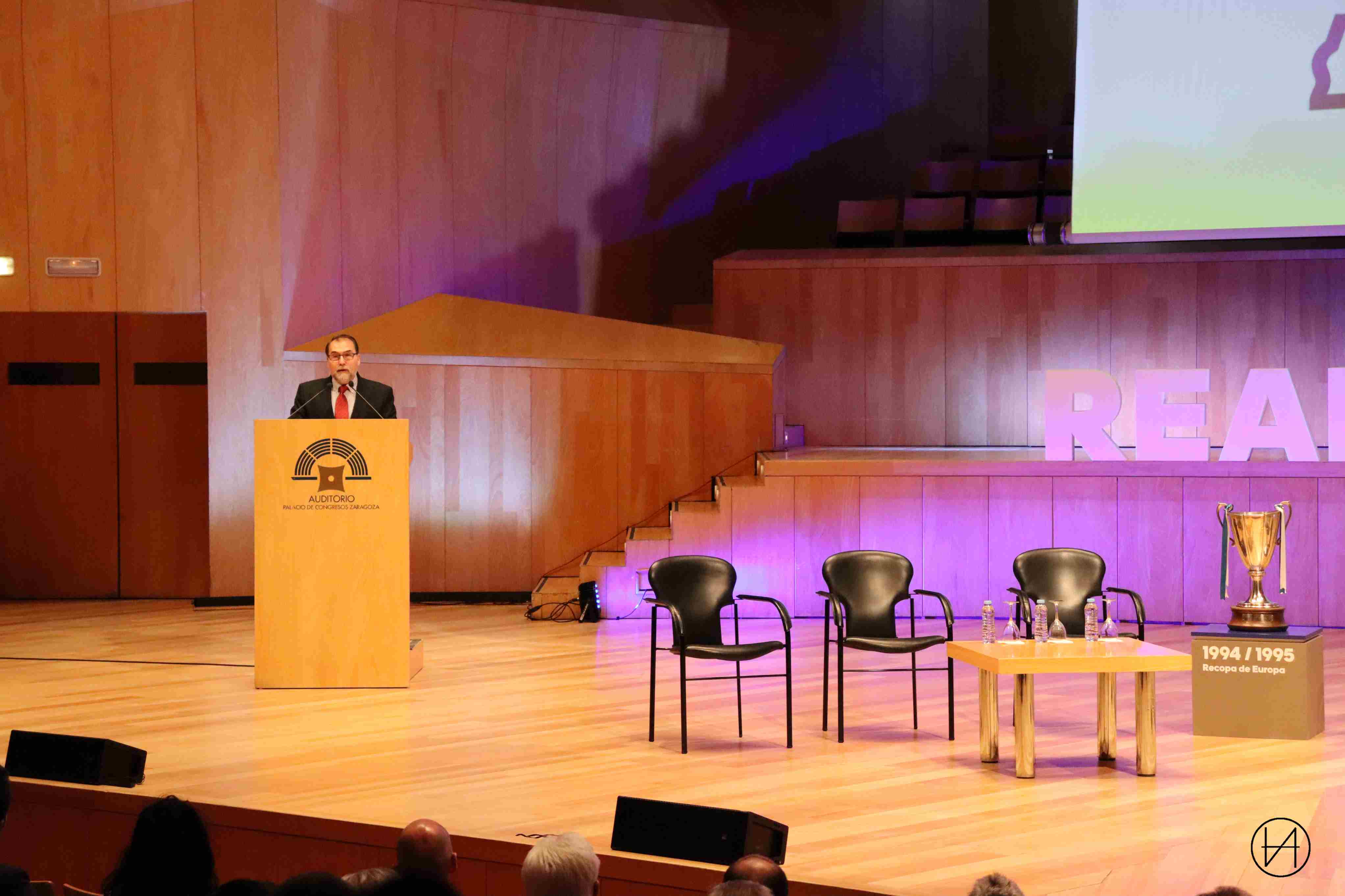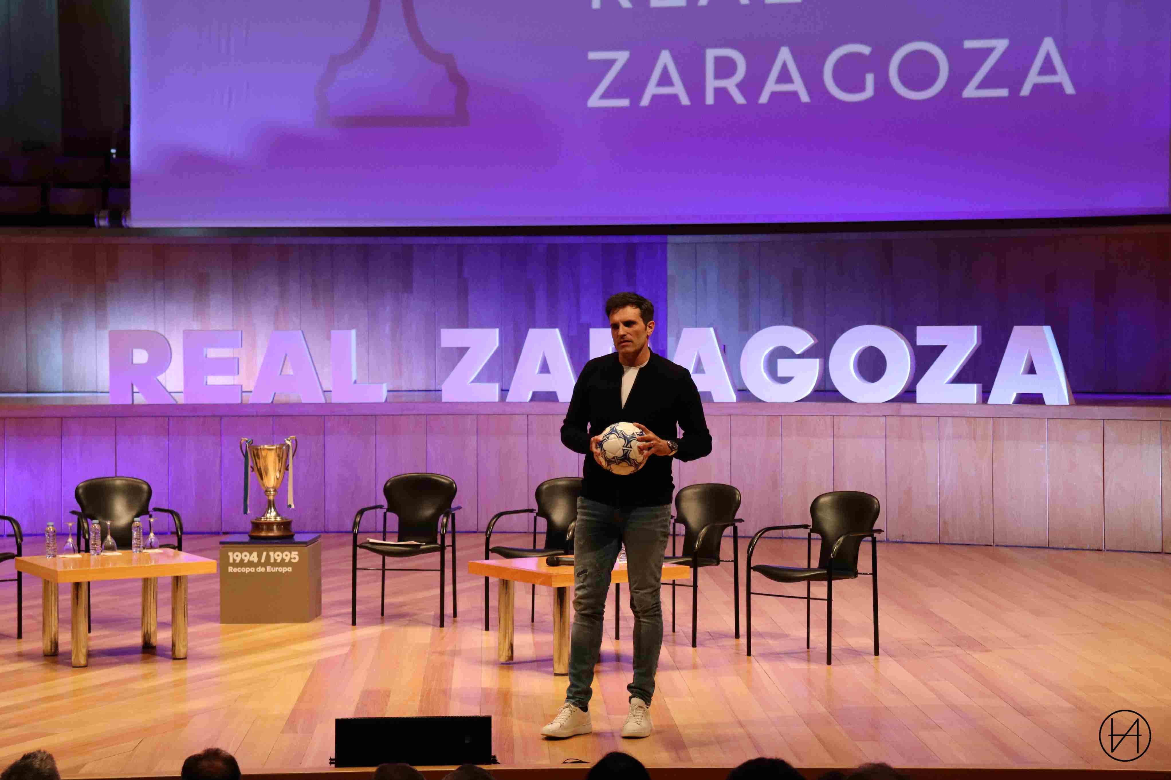 “Mamá, mamá, me late el corazón. Mamá, me estoy enamorado del Real Zaragoza”. Así empezó el evento para rendir homenaje a aquel partido de hace 25 años con el que el Real Zaragoza se alzó con la Recopa de Europa frente al Arsenal inglés. El día del mítico gol de Nayim. Los ‘Encuentros con la Recopa’, este primero en la Sala Mozart del Auditorio de Zaragoza, ya están en marcha, y empiezan cuando se entremezclan pasión, nostalgia y esperanza por el ascenso a Primera División de un Real Zaragoza que este año mantiene en vilo a todos sus seguidores.